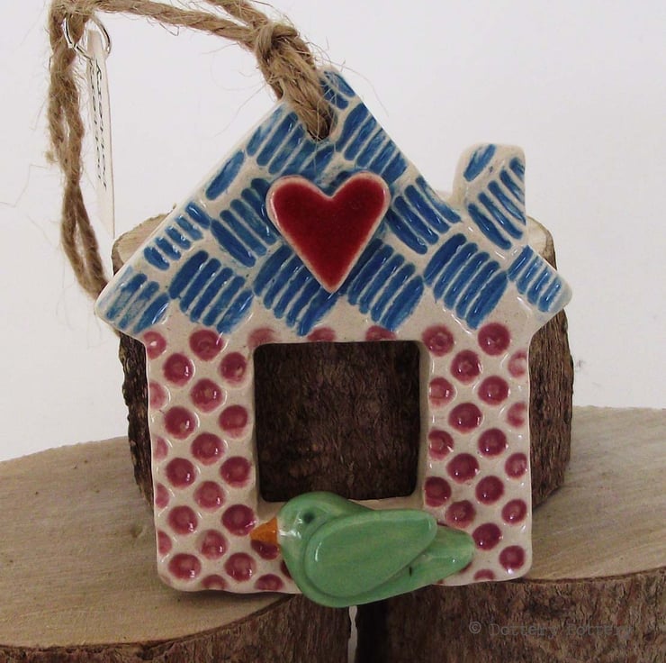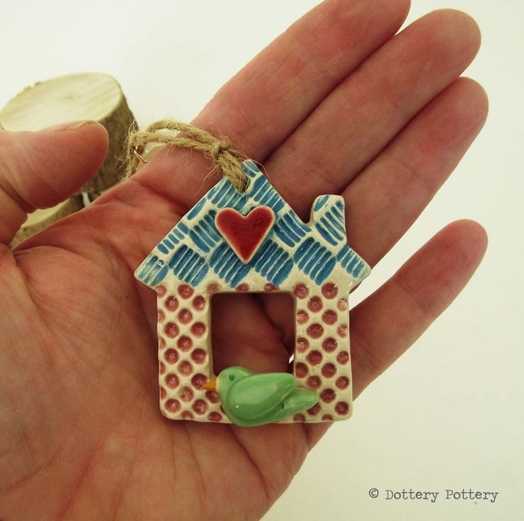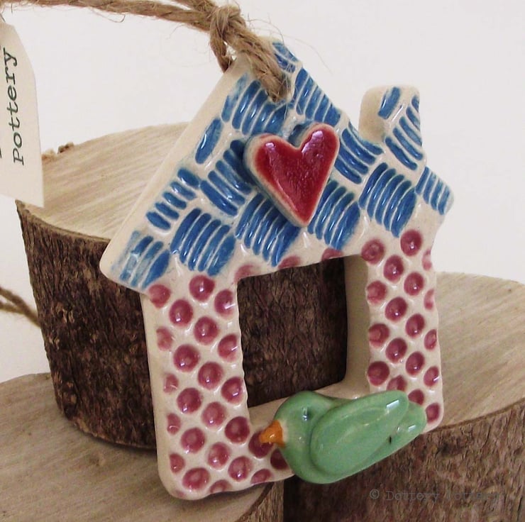 This little house decoration is made from white earthenware clay and finished in a variety of patterns and colours.