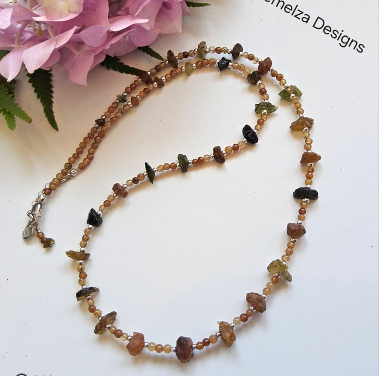 A very rare opportunity to own a Petro Tourmaline and Hessanite Garnet sterling silver necklaces. Petro tourmaline was found in one location healding a small deposit. I love the natural organic earthy tones of both of these genuine gemstones. Hessanite garnet is also a gemstone now very rarely given up by mother earth and commanding high prices in all grades. Micro round gemstones are very expensive to purchase within the trade due to their professional hand cutting process by skilled lapidorists either as plain rounds or faceted.