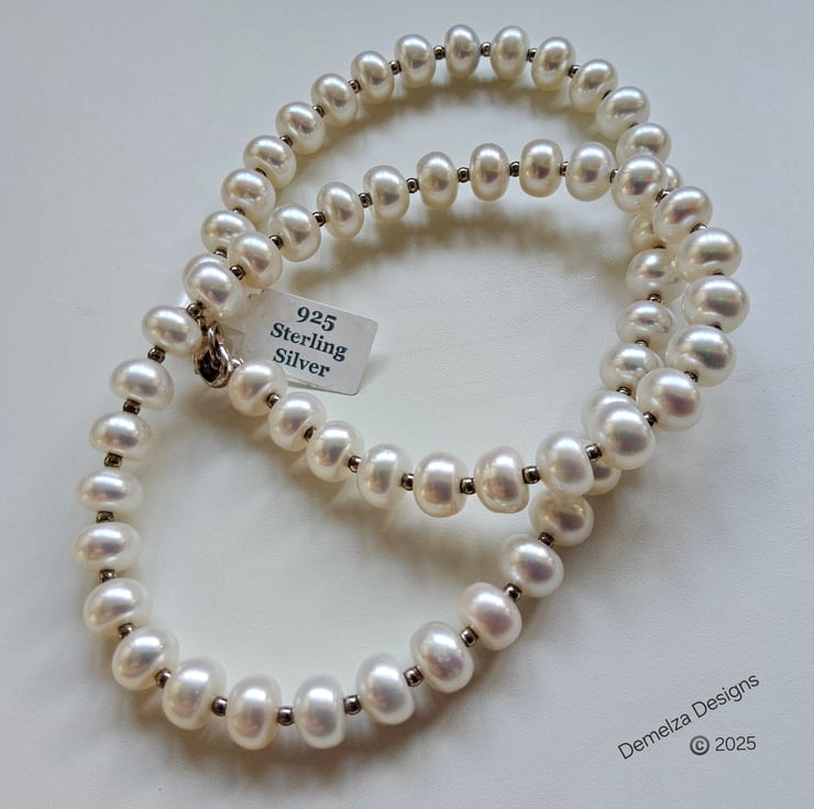 Between each button pearl I have incorporated a micro sterling silver spacer bead finished off with a quality sterling silver clasp. The neckkace has been constructed using professional stainless steel jewellers wire for added strength and durabituty. Thus, resolves any future expensive re-stringing costs in years to come.