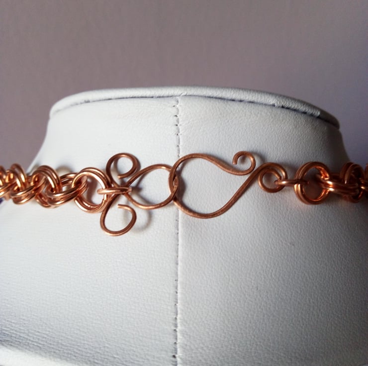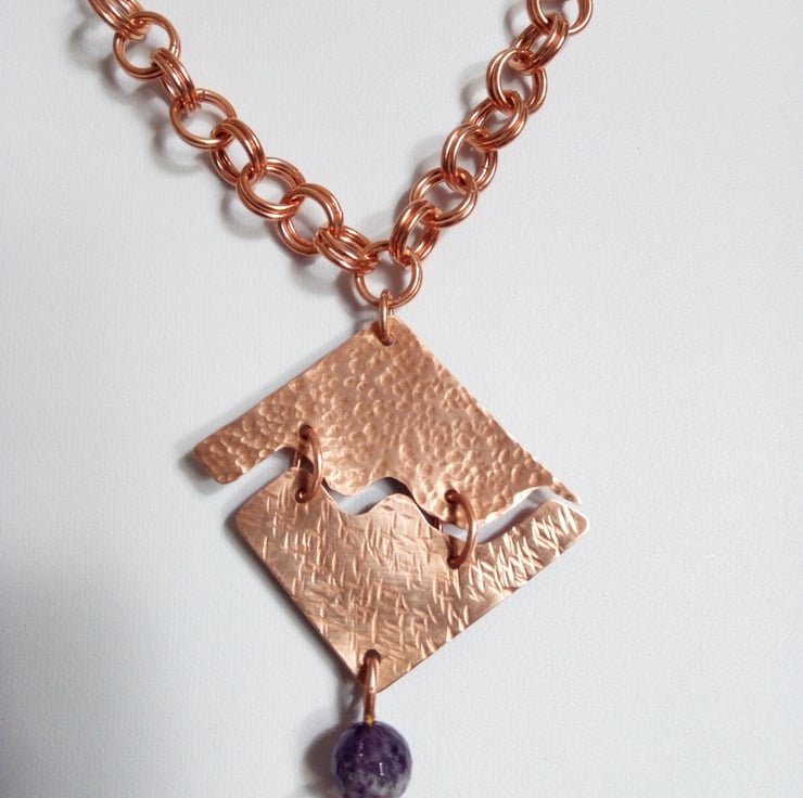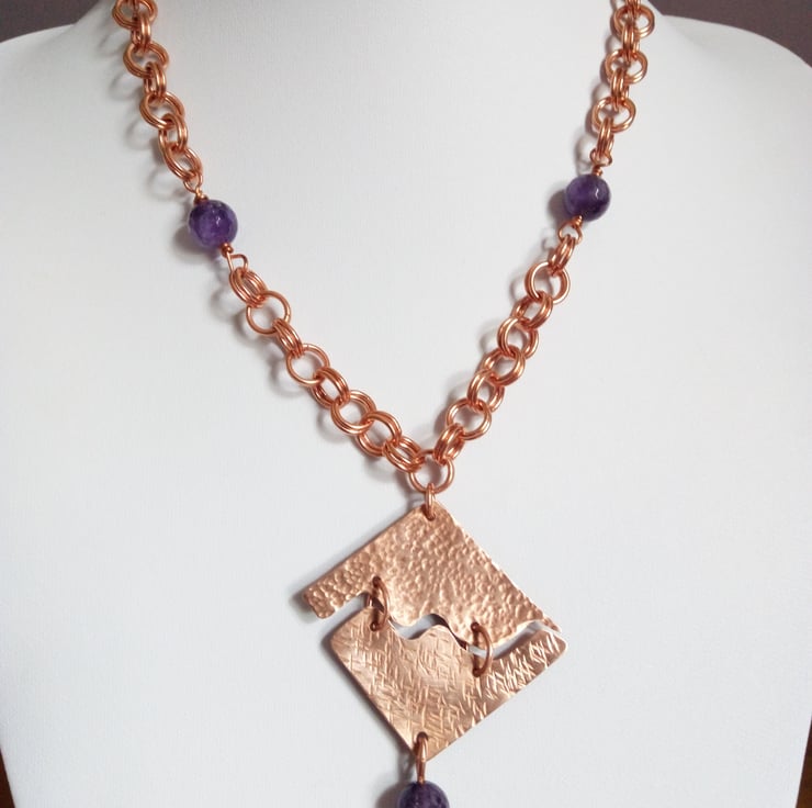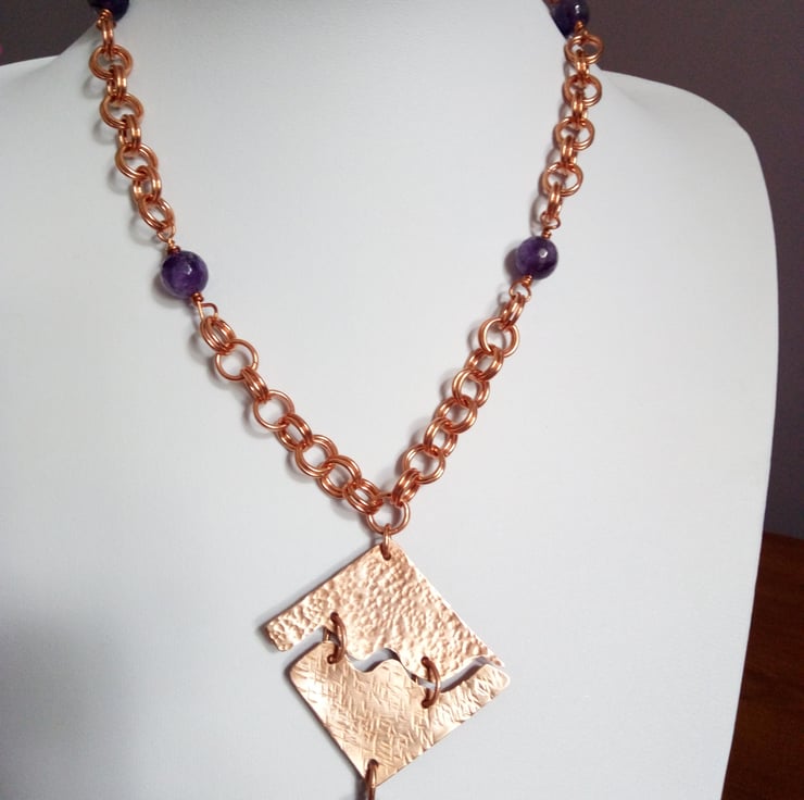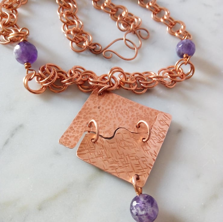 Handmade chain is made of bare copper jump rings and amethyst gemstones.