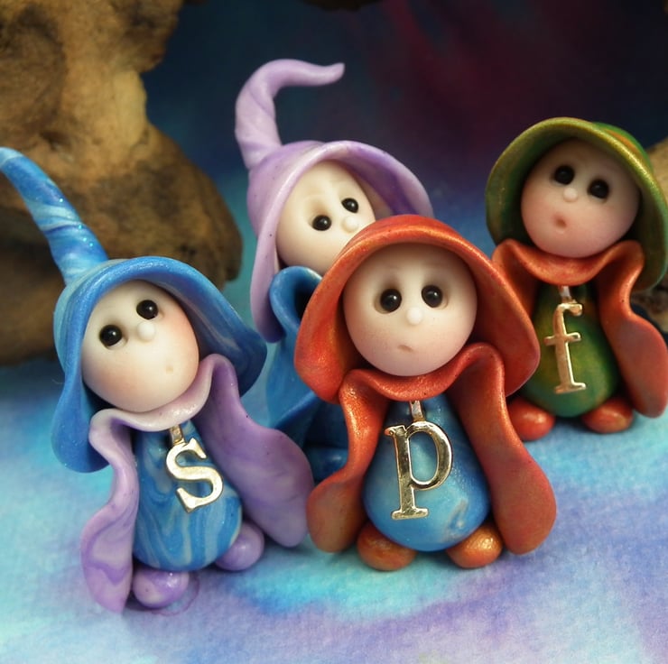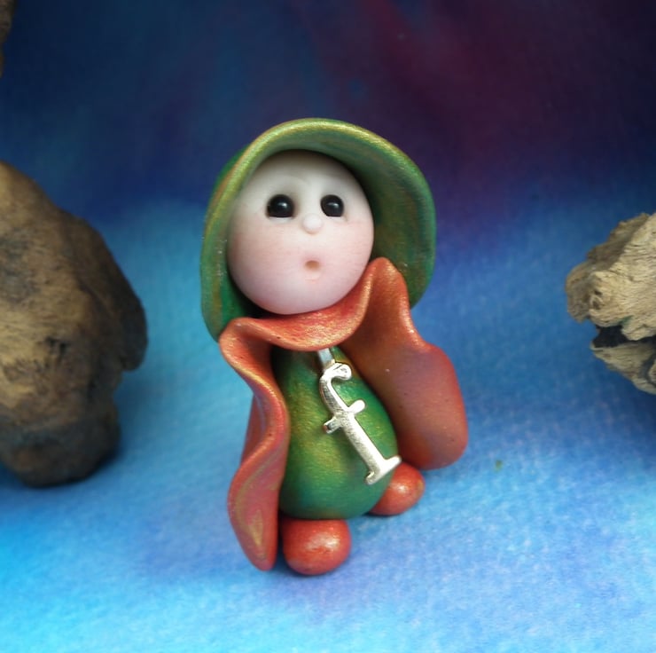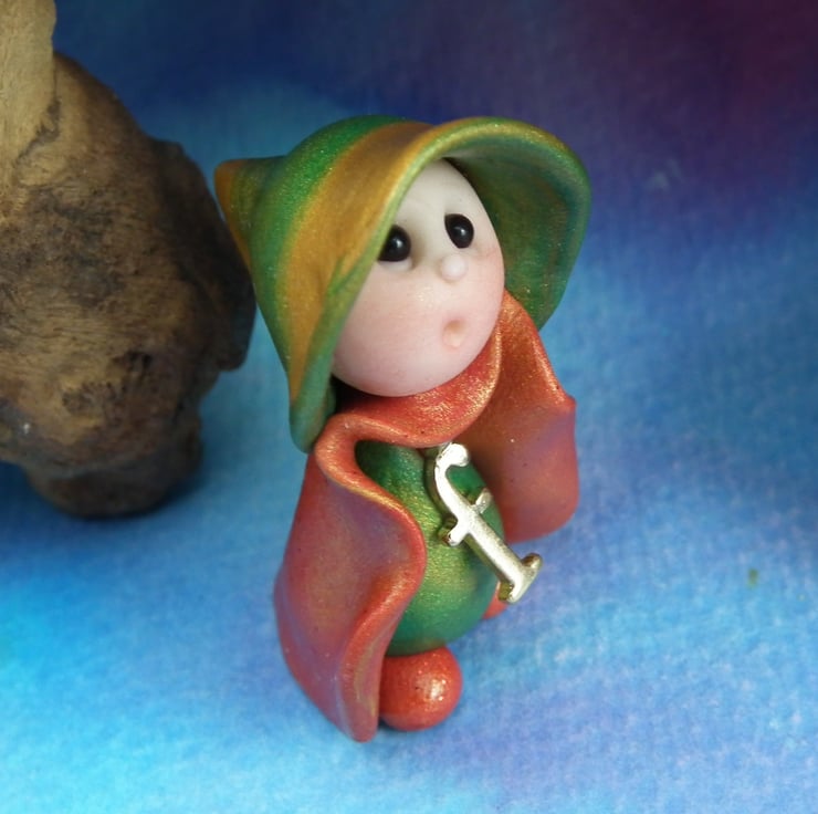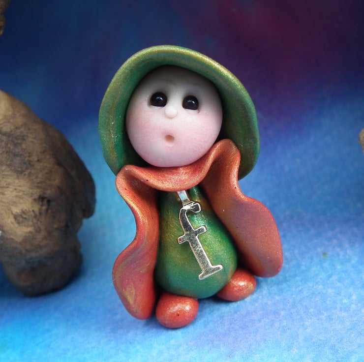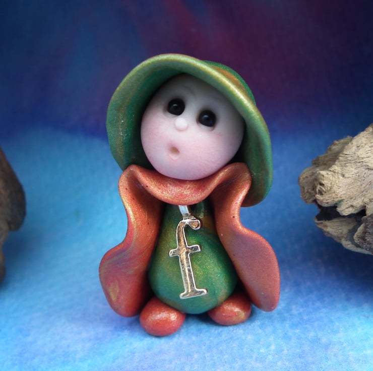 This is a 'one of a kind' creation having been entirely handmade without the use of moulds here at my studio on the Sussex Coast. Modelled with Prosculpt polymers, painted with heat set paints before sealing with lacquer, the 'F' Gnome has sparkling black onyx eyes. Just one and a half inches tall.