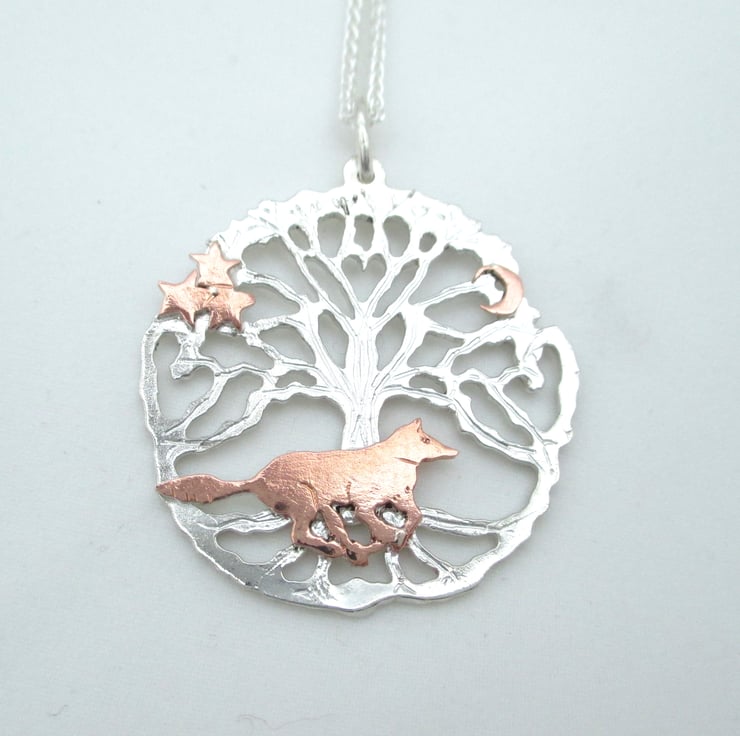 Based on a Yorkshire tree on the Wolds Way. This is a solid substantial pendant hand made from silver & copper.