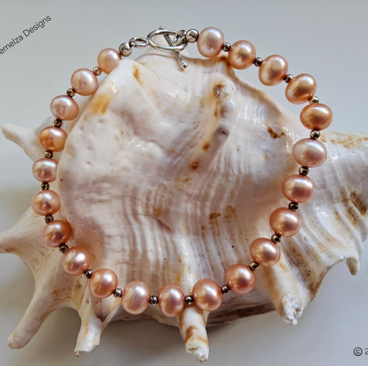 Peach Freshwater Cultured Pearl Sterling Silver Bracelet