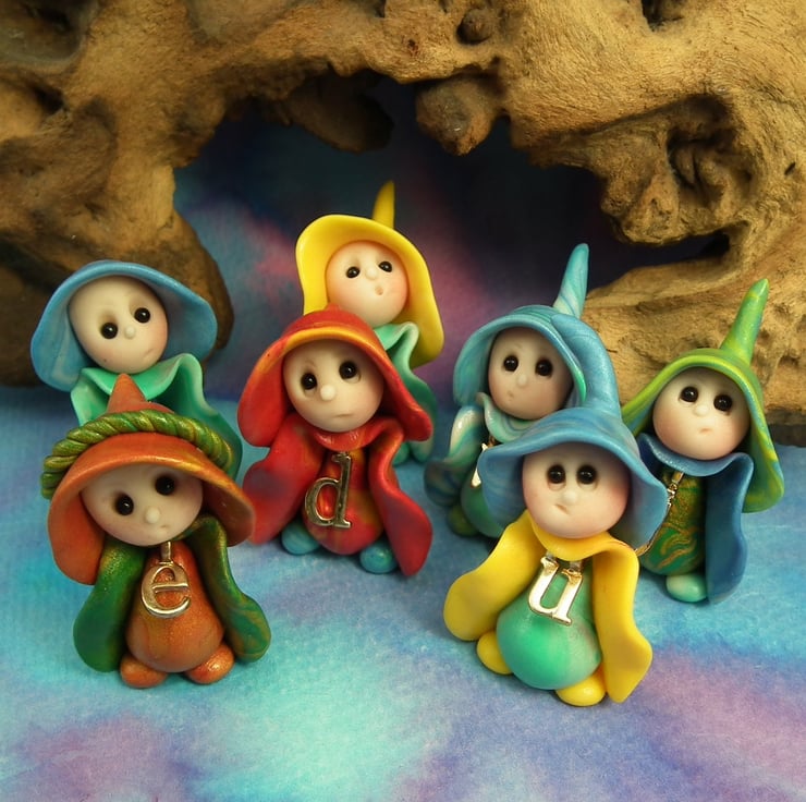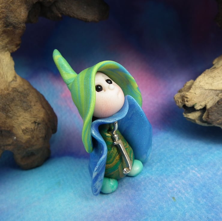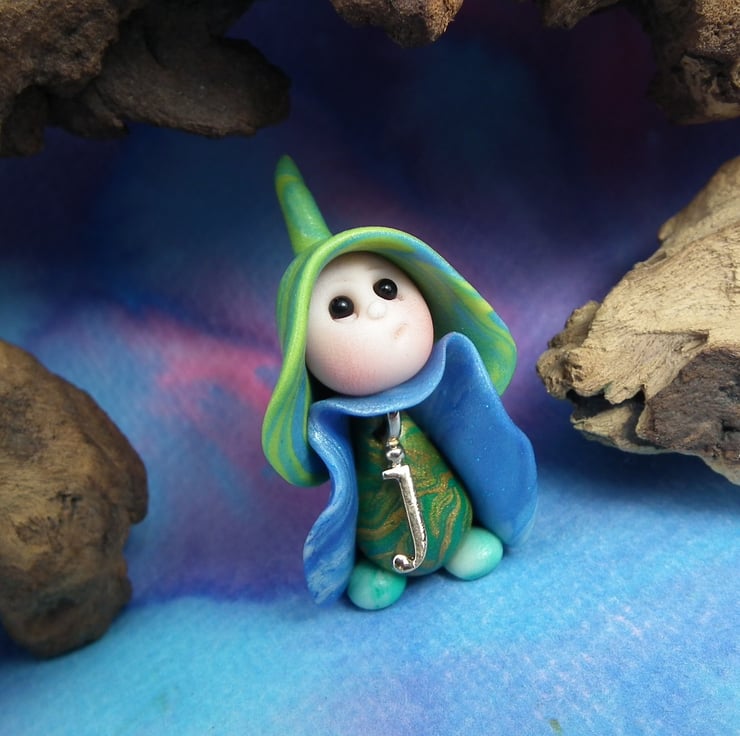 This is a 'one of a kind' creation having been entirely handmade without the use of moulds here at my studio on the Sussex Coast. Modelled with Prosculpt polymers, painted with heat set paints before sealing with lacquer, the 'J' Gnome has sparkling black onyx eyes. Just one and a half inches tall.