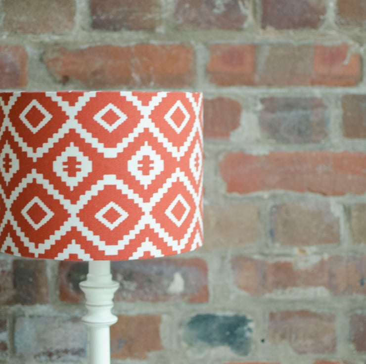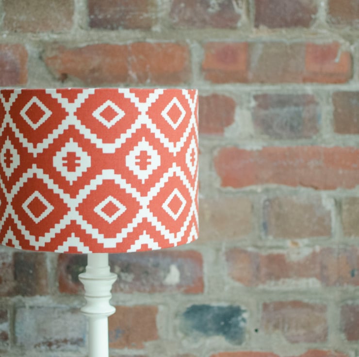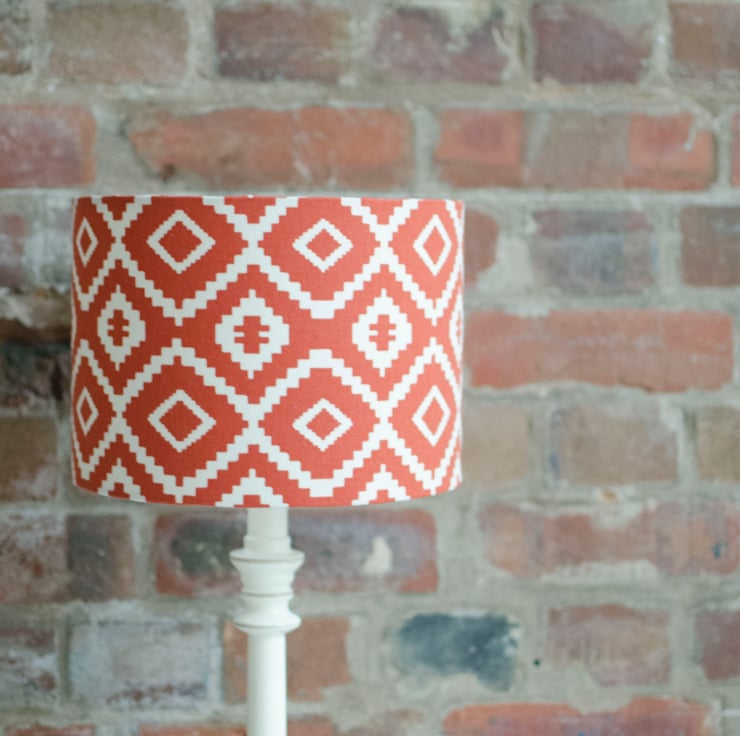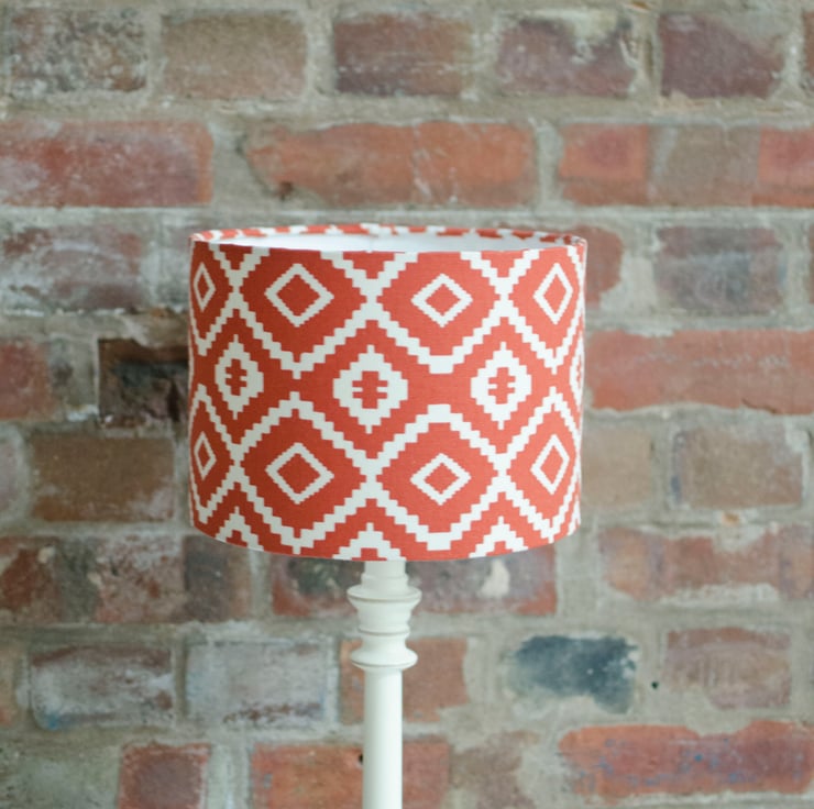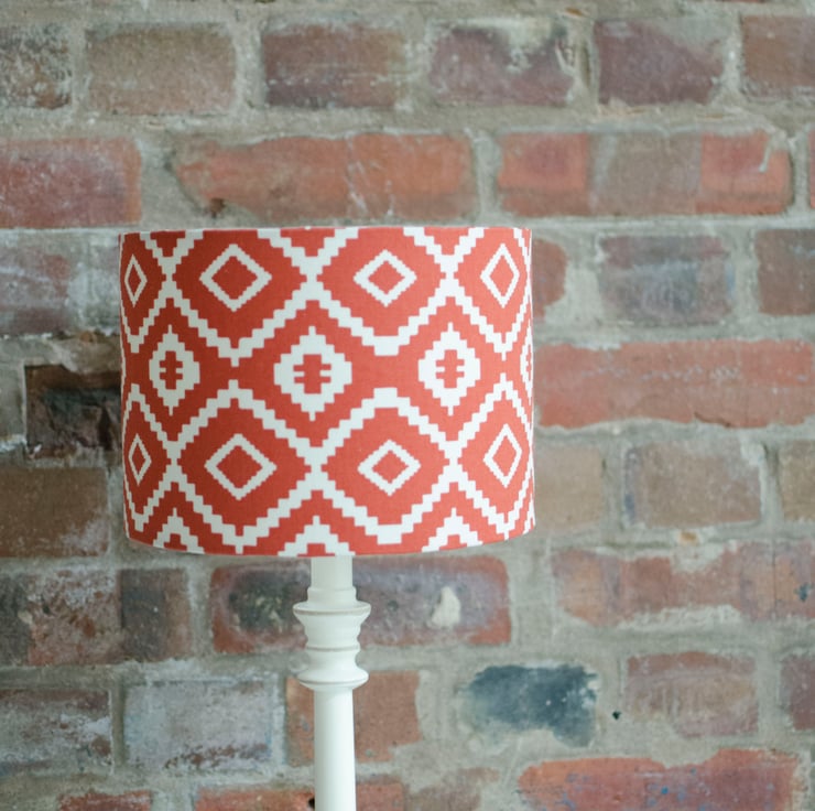 This lampshade has a beautiful rust coloured fabric and features an aztec pattern. This is a lovely coloured lampshade.