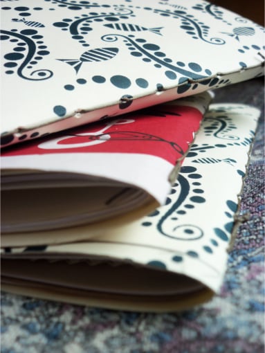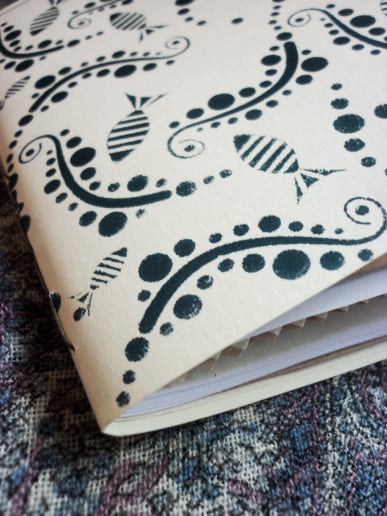 This little screen printed notebook is a handy keeper of your thoughts, poems, wishes and scribbles. It features my original repeating fish design and is printed with my very own hands using a squeegee, a screen, and of course ink! I have hand stitched the plain pages using a strong linen thread.