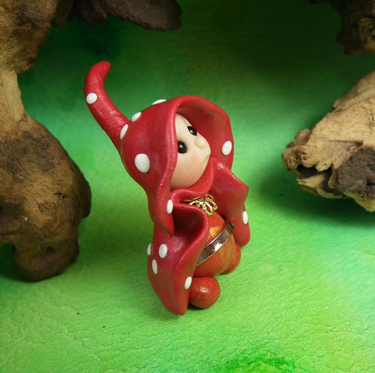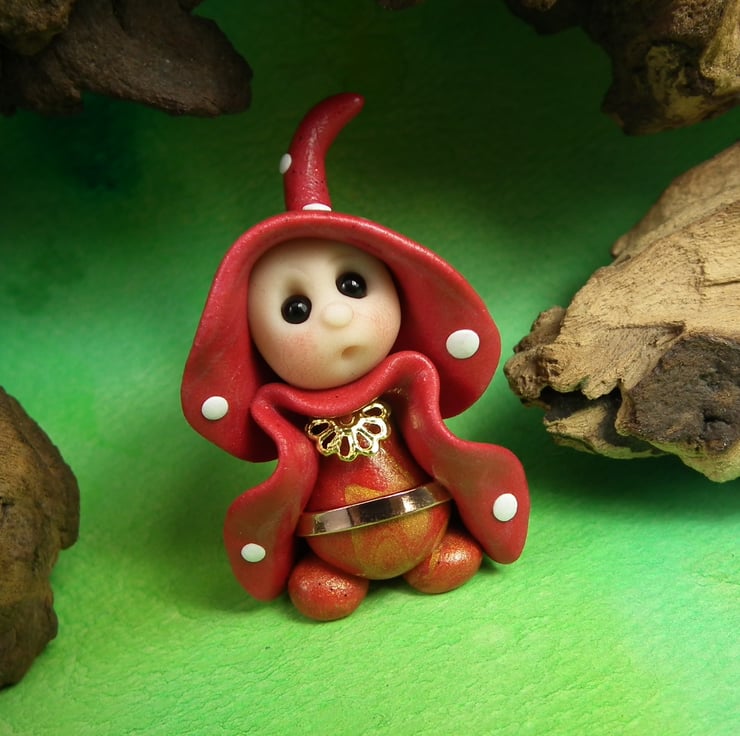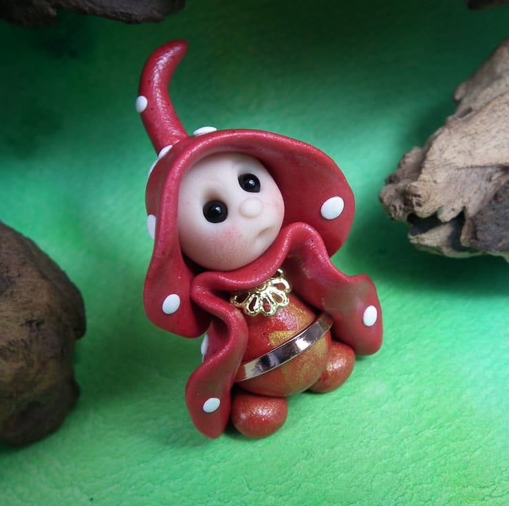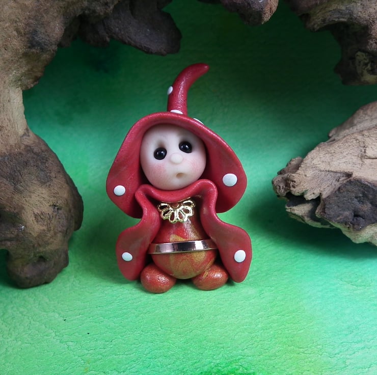 This is a 'one of a kind' creation having been entirely handmade without the use of moulds here at my studio on the Sussex Coast. Modelled with Prosculpt polymers, painted with heat set paints before sealing with lacquer, Gert has sparkling black onyx eyes. Gert the Toadstool Gnome is just over one and a half inches tall.