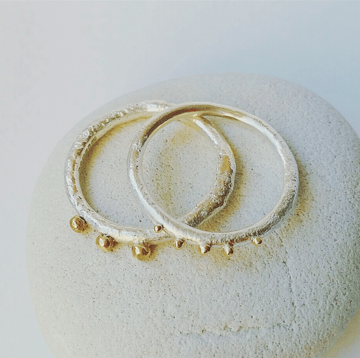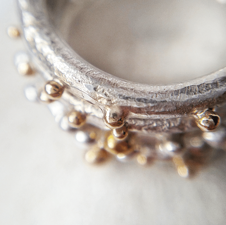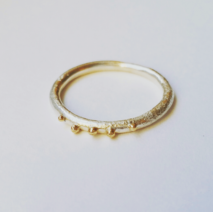 This is a beautiful fused sterling silver ring with little ball details made from 9 ct gold.
