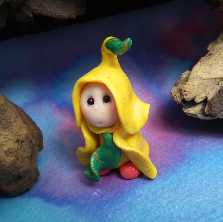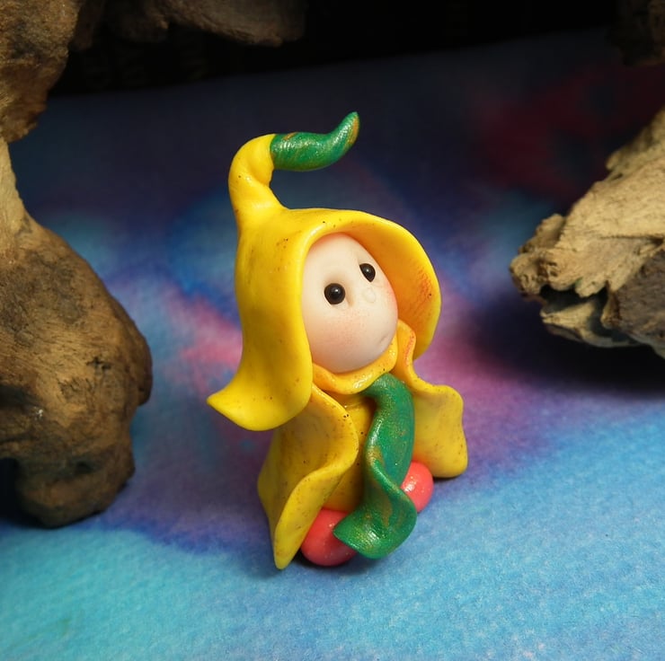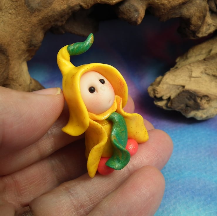 This is a 'one of a kind' creation having been entirely handmade without the use of moulds here at my studio on the Sussex Coast. Modelled with Prosculpt polymers, painted with heat set paints before sealing with lacquer, Juno has sparkling black onyx eyes. Juno the Blossom Gnome Maiden is just one and a half inches tall.