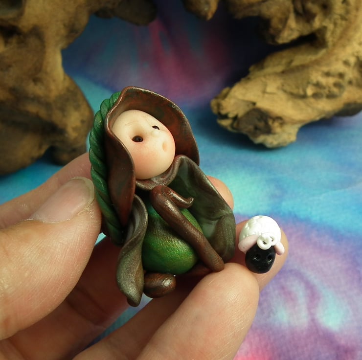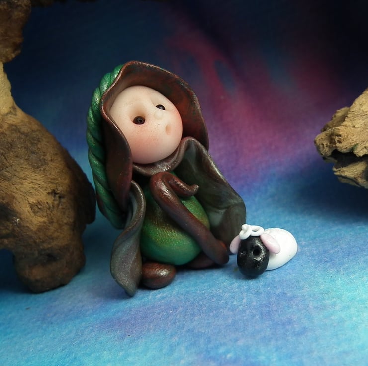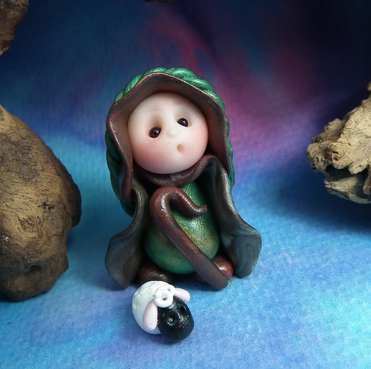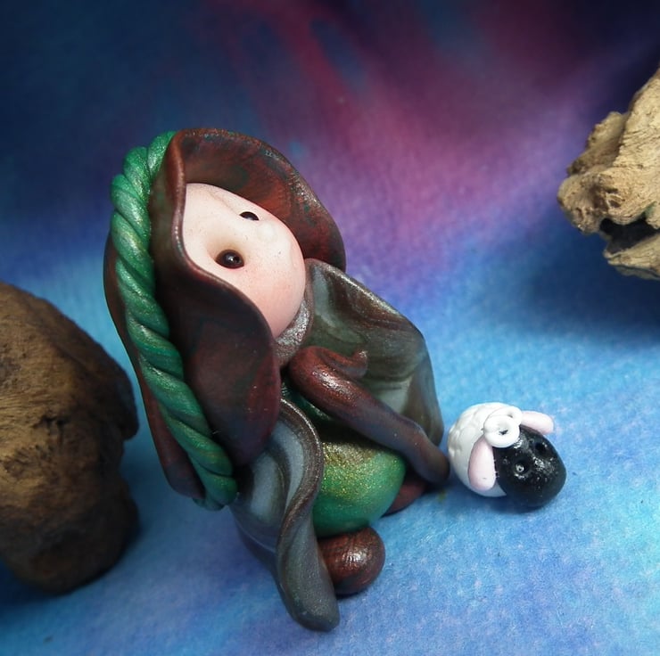 This is a 'one of a kind' creation having been entirely handmade without the use of moulds here at my studio on the Sussex Coast. Modelled with Prosculpt polymers, painted with heat set paints before sealing with lacquer, Shepherd Gnome has sparkling black onyx eyes and is just over one and a half inches tall.