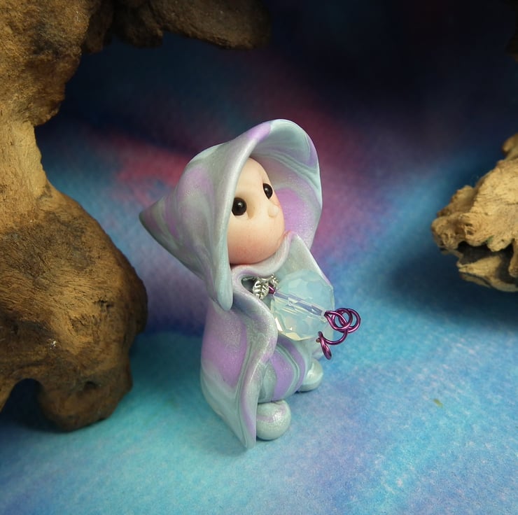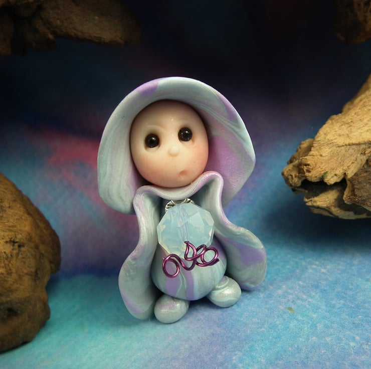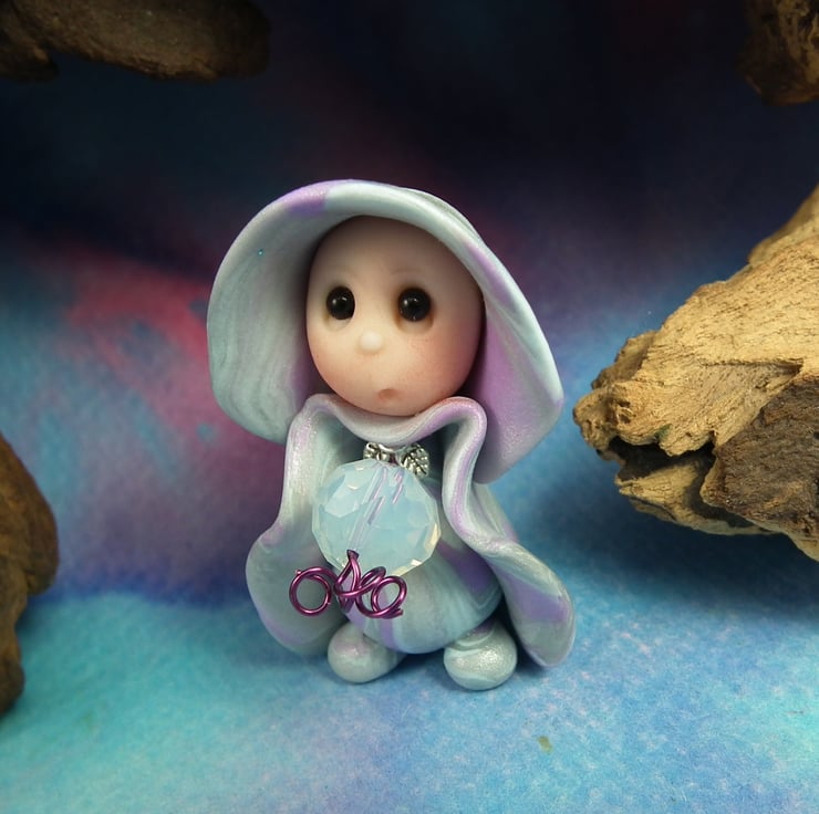 Birthstone Gnome for October 'Sylvi' ... a tiny Gnome with a glittering glass crystal to represent opal ...