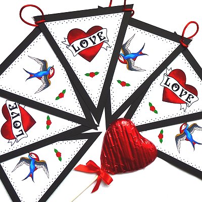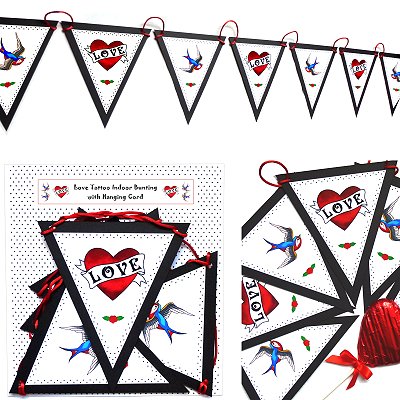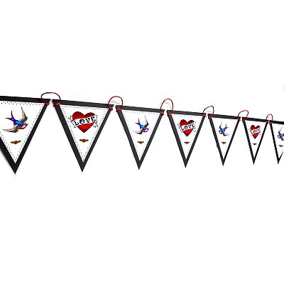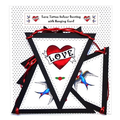 I designed this indoor bunting that can be given as a gift to anyone who loves tattoos, hearts & swallows in the biker or rockabilly style. It is part of my Love Tattoo range.
