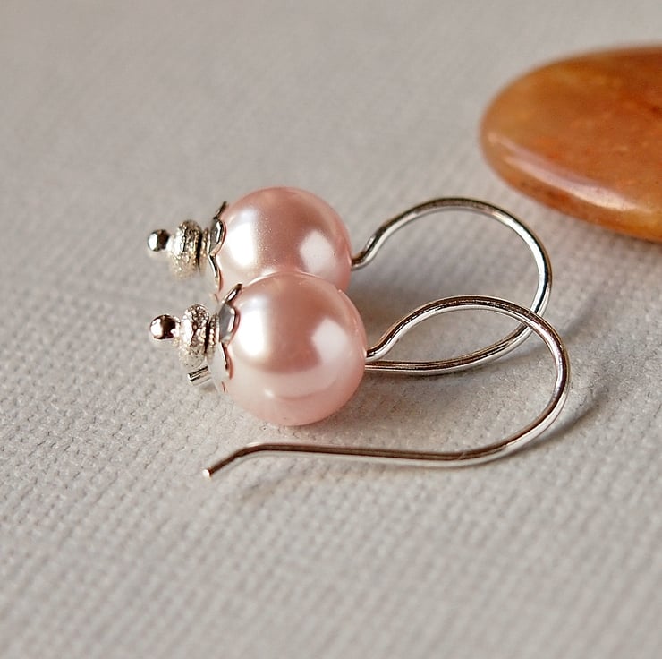 Pale Pink Pearl Earrings - Sterling Silver - Swarovski