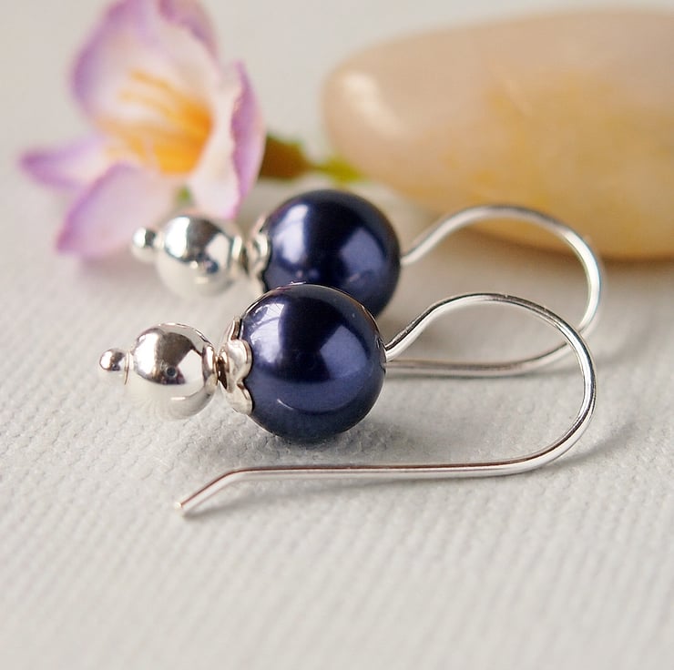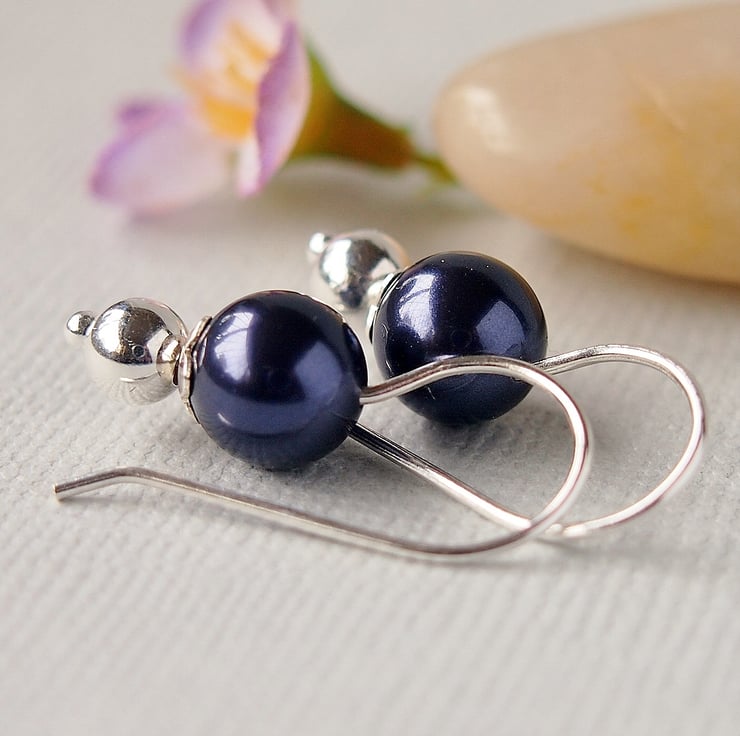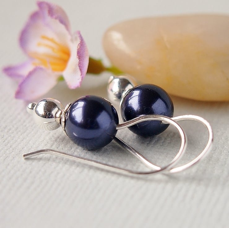 Handmade earrings featuring Purple Swarovski glass pearls.