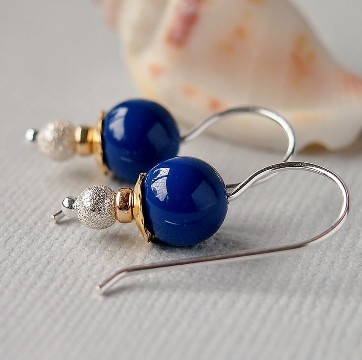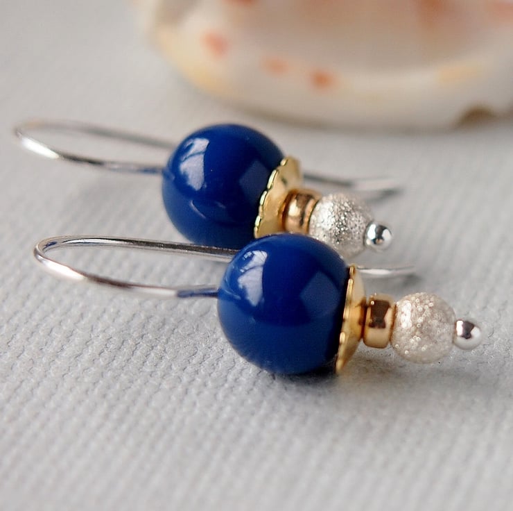 Handmade earrings featuring Dark Lapis Swarovski glass pearls.