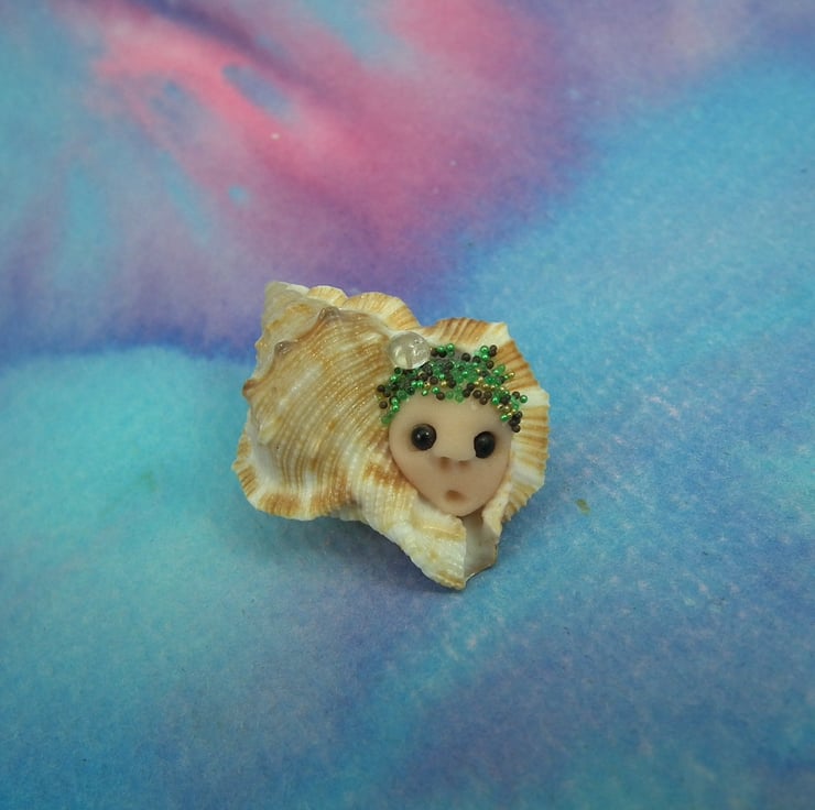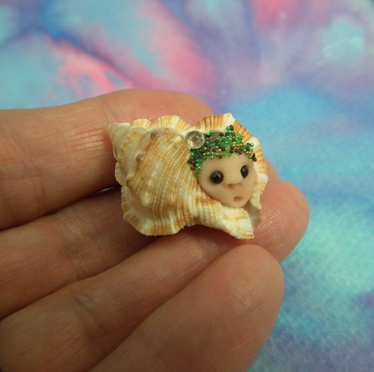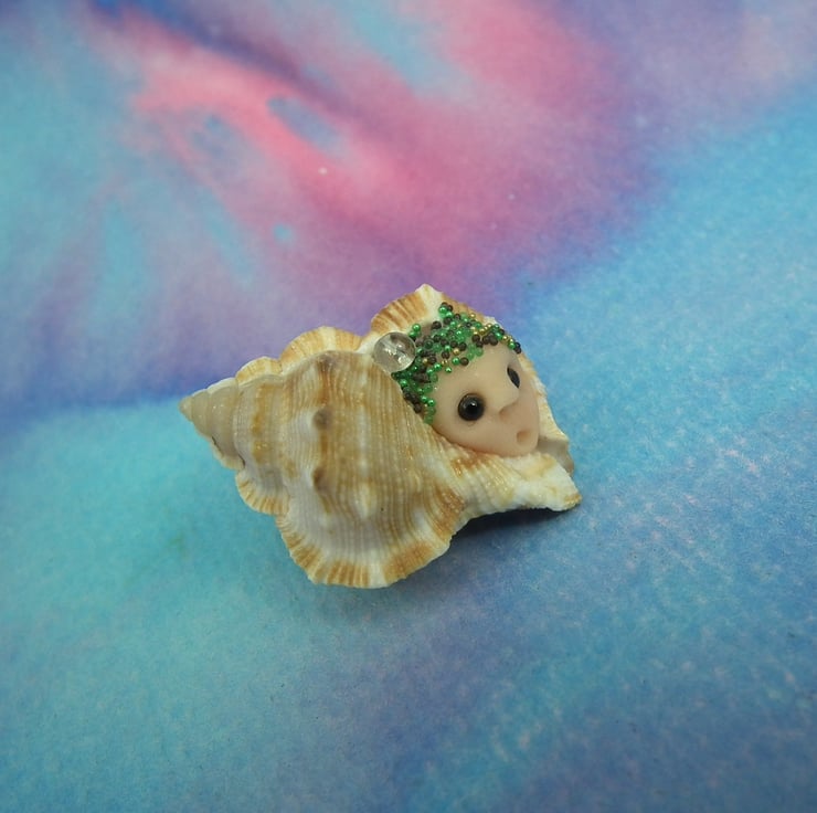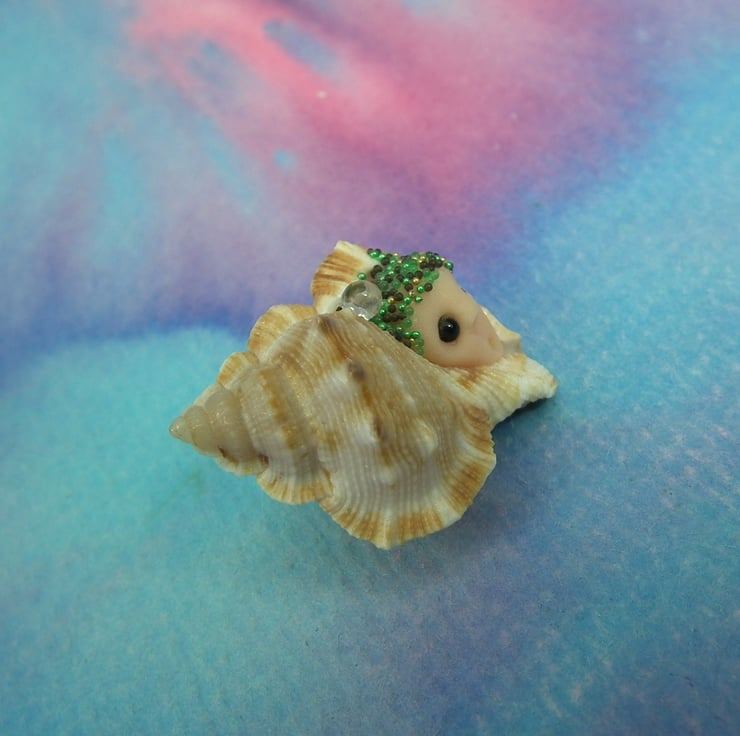 This is a 'one of a kind' creation having been entirely handmade without the use of moulds here at my studio on the Sussex Coast. Modelled with Prosculpt polymers in a natural seashell with bead eyes. This ShellDweller is just one inch long.