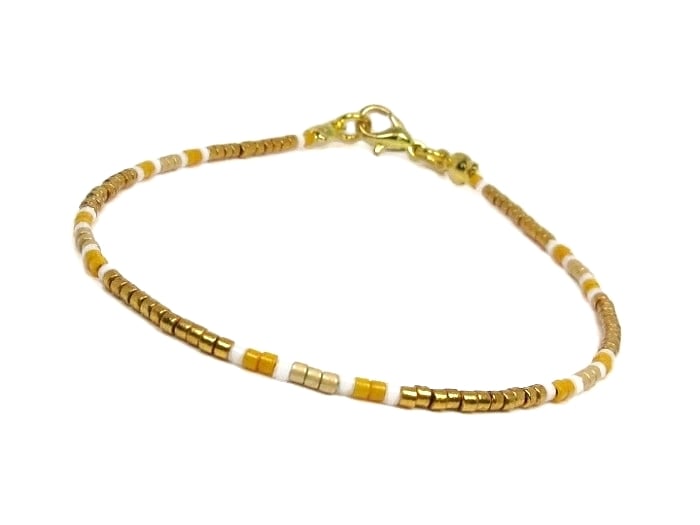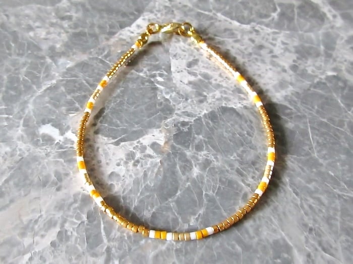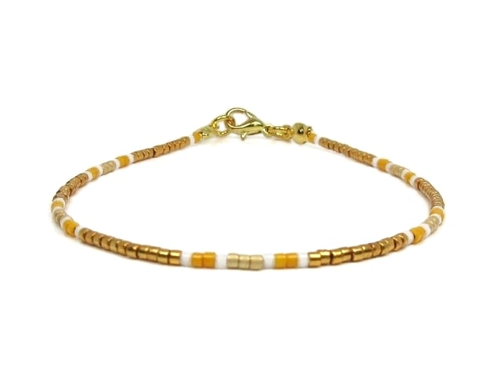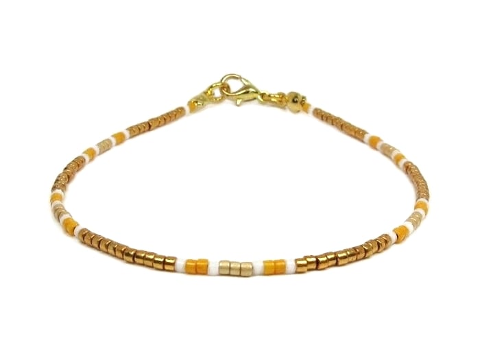 I've arranged these little beads so that the bracelet is mostly bright shiny gold with stations of orange, white & matte gold around the bracelet.