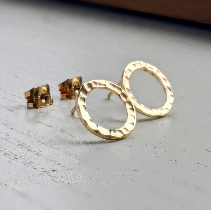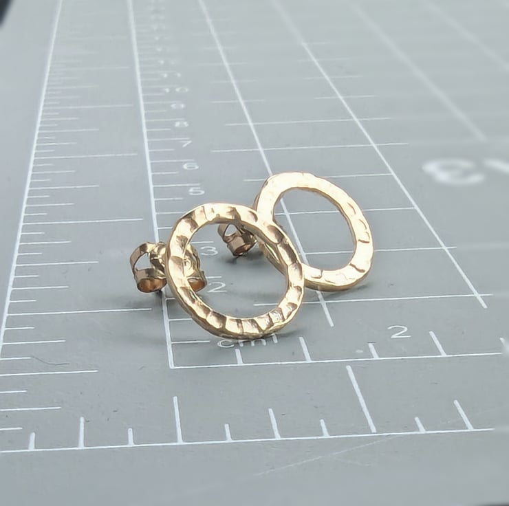 9 carat gold hoops hammered texture approx 10 mm diameter x 1.5 mm