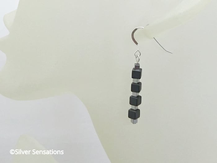 Dainty Hematite cubes earrings uniquely designed with 2 tones of beads.