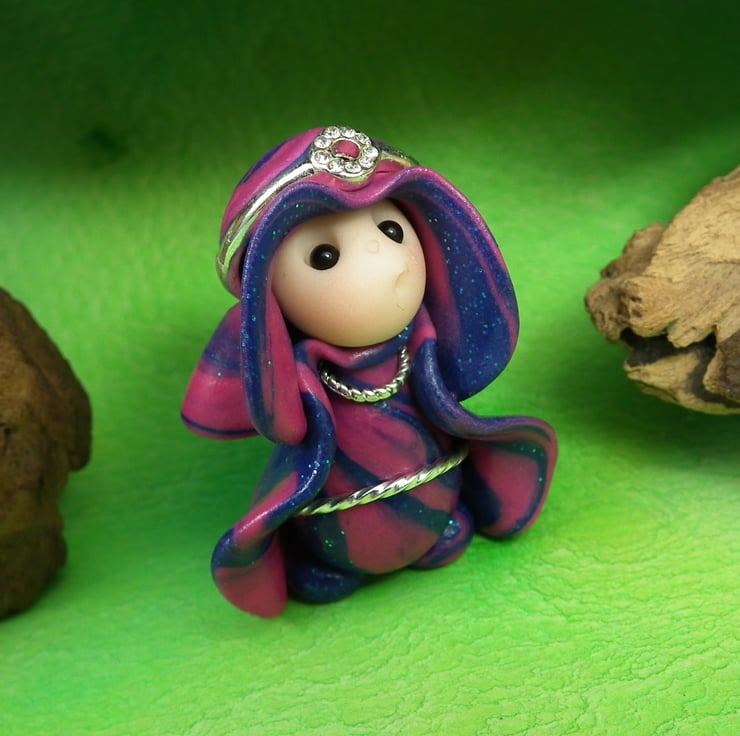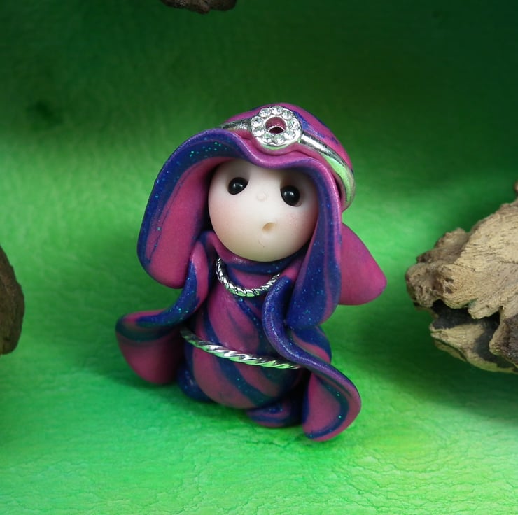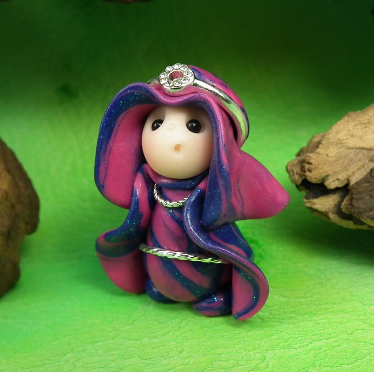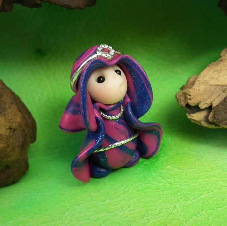 This is a 'one of a kind' creation having been entirely handmade without the use of moulds here at my studio on the Sussex Coast. Modelled with Prosculpt polymers, painted with heat set paints before sealing with lacquer, Princess Davina has sparkling black onyx eyes. Princess Davina the Royal Gnome is just one and a half inches tall.