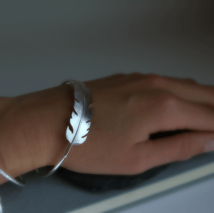Silver Feather Bangle Bracelet