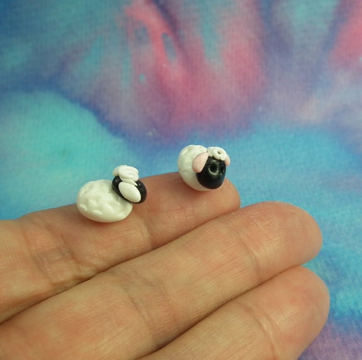 Pair of tiny lambs sheep .5" sheep OOAK Sculpt by Ann Galvin Gnome Village
