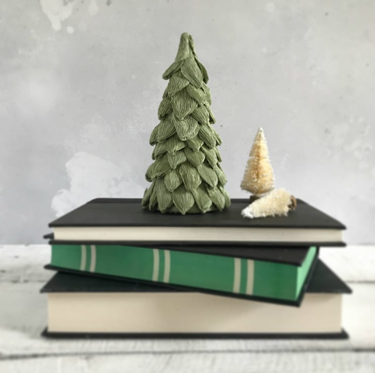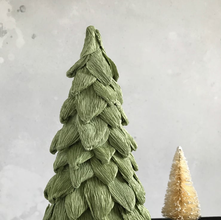 The crepe paper Christmas Trees are handmade from the finest of Italian crepe papers, each ‘branch petal’ shaped and cut by hand.