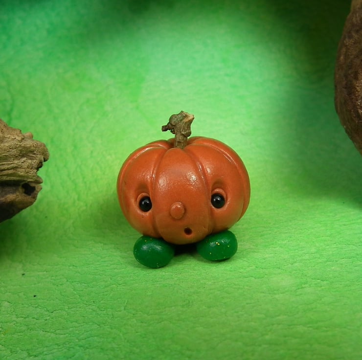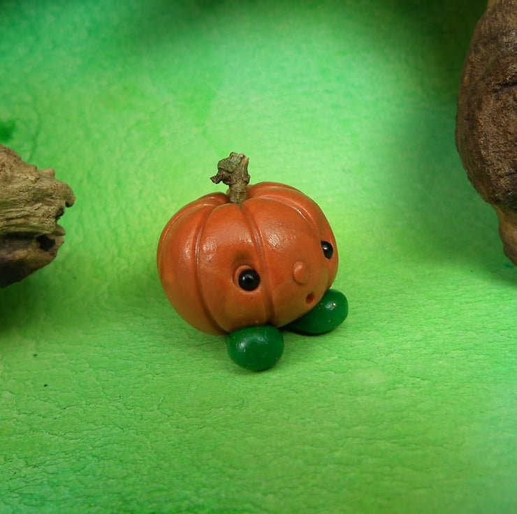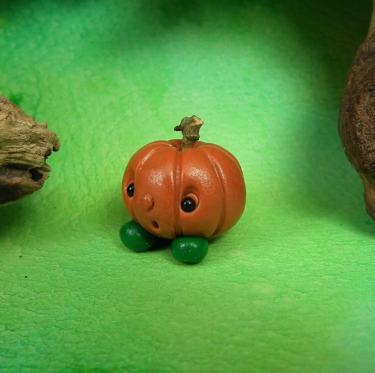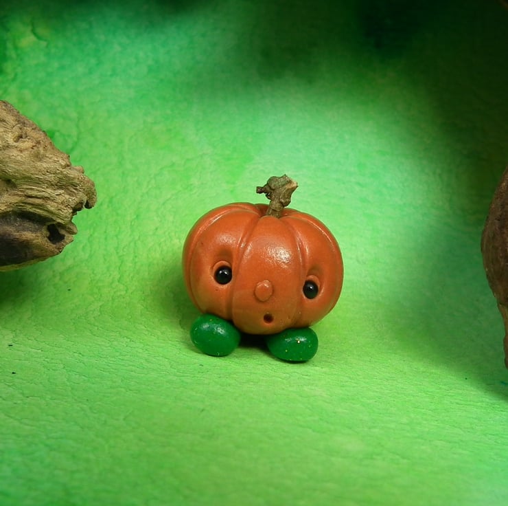 This is a 'one of a kind' creation having been entirely handmade without the use of moulds here at my studio on the Sussex Coast. Modelled with Prosculpt polymers, painted with heat set paints before sealing with lacquer, Jep the Pumpkin Gnome has sparkling black onyx eyes. Just three quarters of an inch tall.
