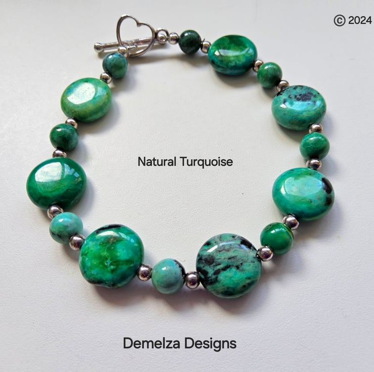 This beautiful bracelet has been created using all genuine turquoise. This item is very competitively priced for the size and amount of stabilised turquoise in a single piece of jewellery!