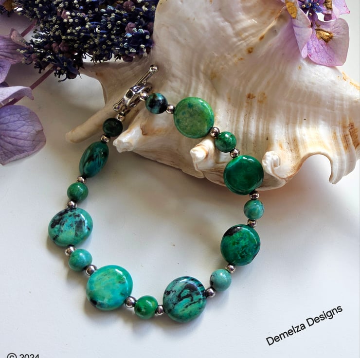 This beautiful bracelet has been created using all genuine turquoise. This item is very competitively priced for the size and amount of stabilised turquoise in a single piece of jewellery!