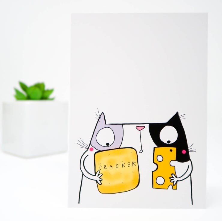This illustration is an original drawing from my sketch book , it has been scanned and coloured digitally before being printed onto super white 300gsm smooth white card.