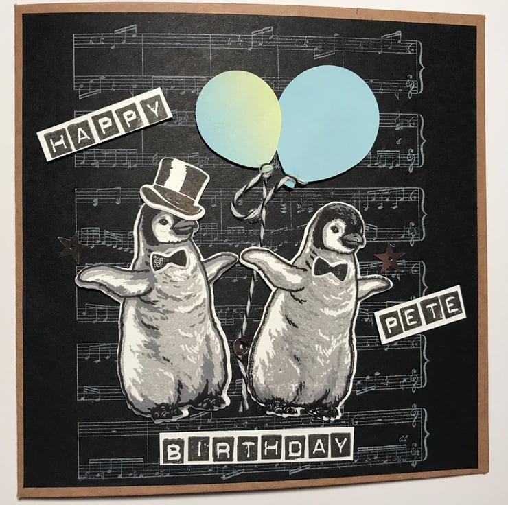 I originally designed this card for my nephew's birthday; his favourite animals are penguins and he works as a sub-organist at St Paul's Cathedral in London.