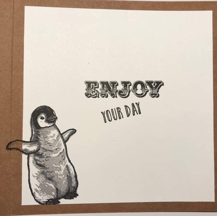 Inside "Enjoy your day" sentiment stamped with another cute penguin