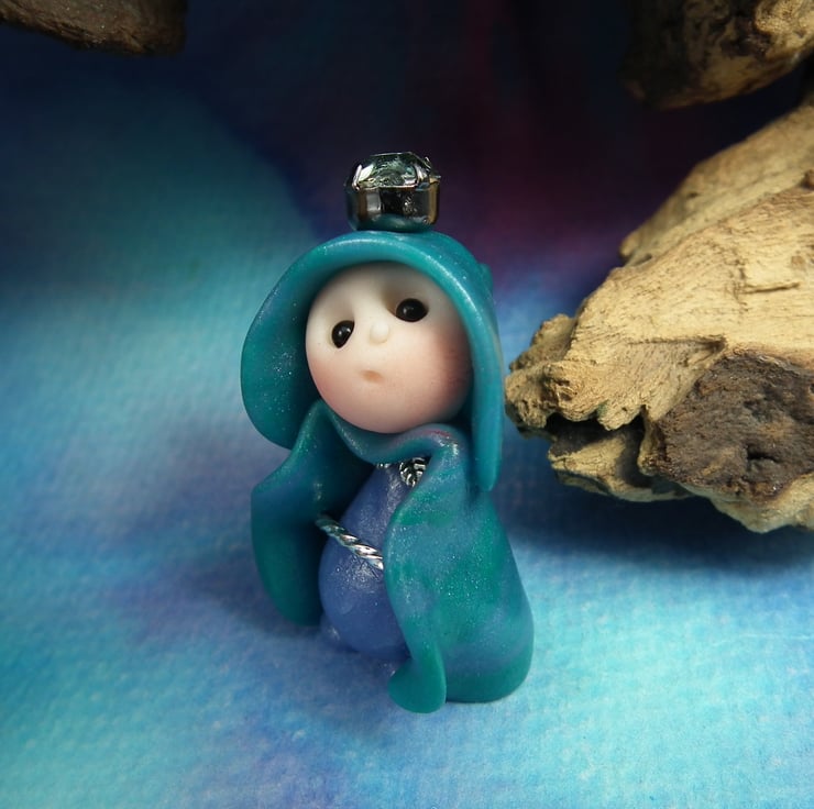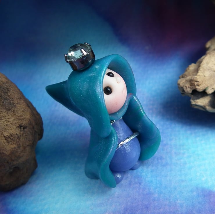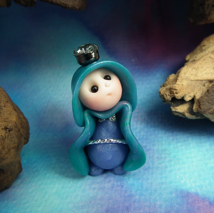 This is a 'one of a kind' creation having been entirely handmade without the use of moulds here at my studio on the Sussex Coast. Modelled with Prosculpt polymers, painted with heat set paints before sealing with lacquer, Princess Ella has sparkling black onyx eyes. Princess Ella the Royal Gnome is just one and a half inches tall.