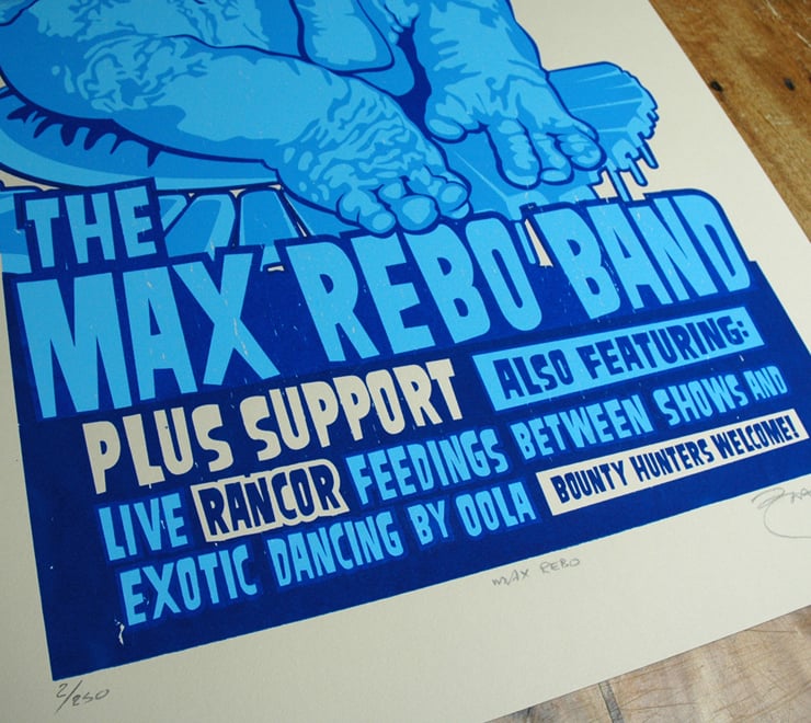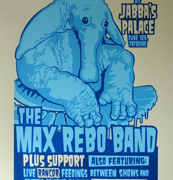Star Wars Rocks!! Fans of the original trilogy will remember these weird musical characters from the New Hope episode IV. So here’s my take on what a Max Rebo Band tour poster might look like.