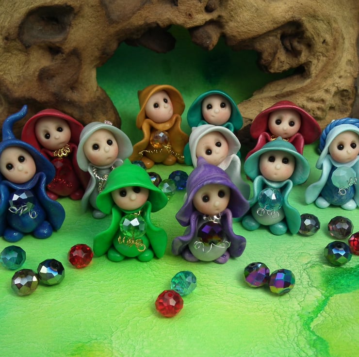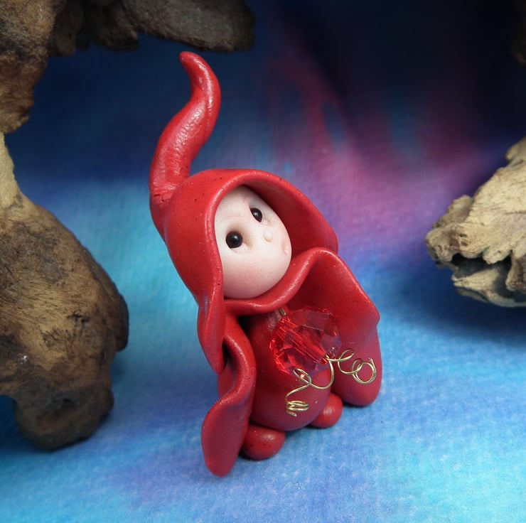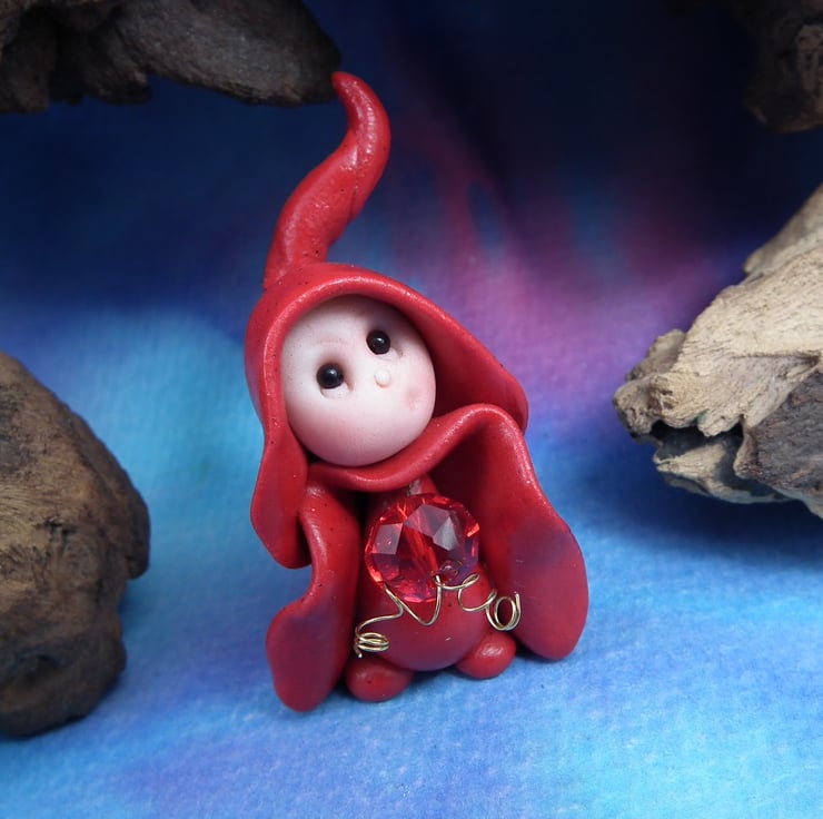 This is a 'one of a kind' creation having been entirely handmade without the use of moulds here at my studio on the Sussex Coast. Modelled with Prosculpt polymers, painted with heat set paints before sealing with lacquer, the January Gnome has sparkling black onyx eyes. Just one and a half inches tall.