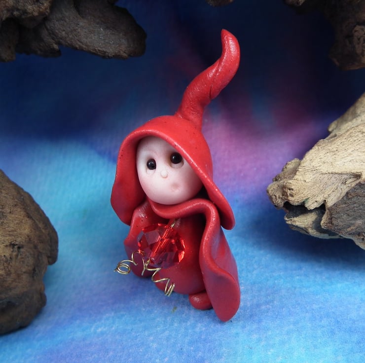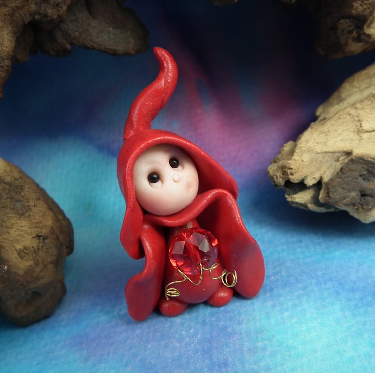 Birthstone Gnome for January 'Haze' ... a tiny Gnome with a glittering glass crystal to represent garnet ...
