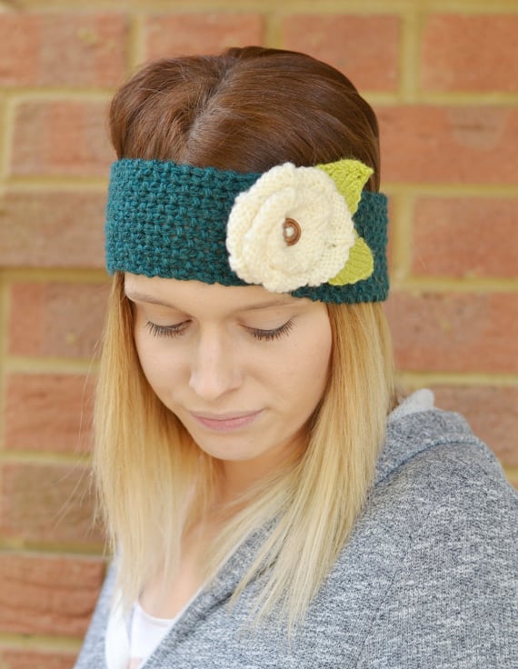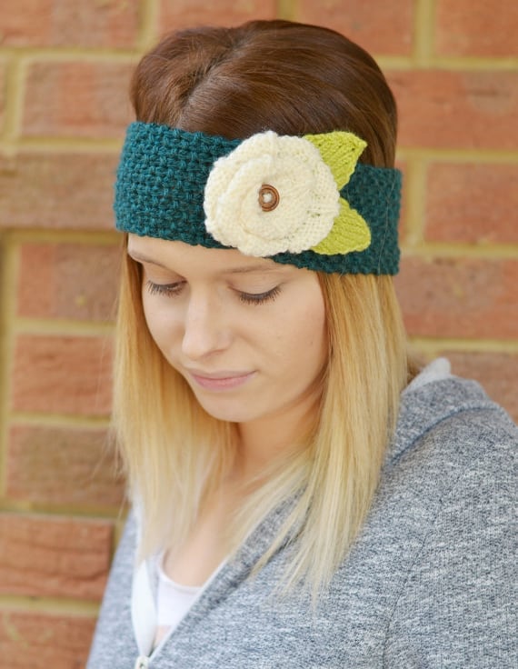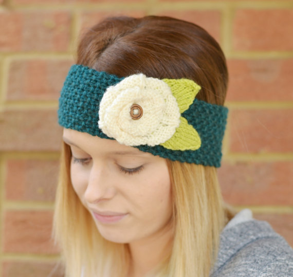 This lovely little headband is knitted in a chunky yarn in a lovely shade called peacock