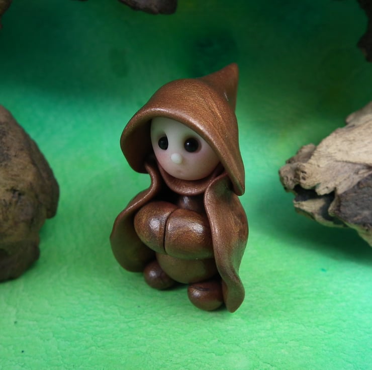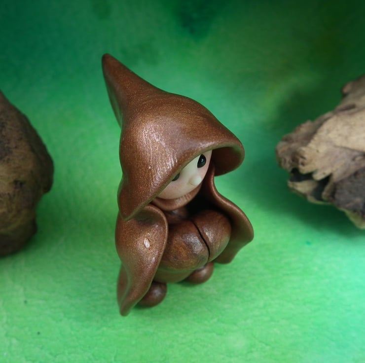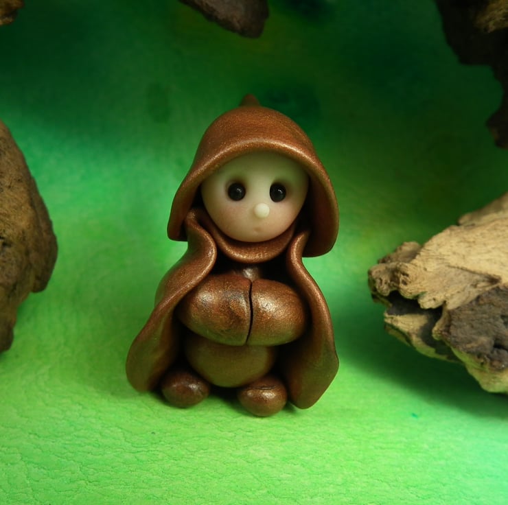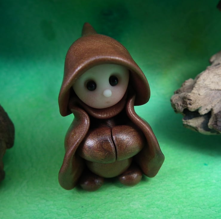 This is a 'one of a kind' creation having been entirely handmade without the use of moulds here at my studio on the Sussex Coast. Modelled with Prosculpt polymers, painted with heat set paints before sealing with lacquer, Herne has sparkling black onyx eyes. Herne the Gnome Monk is just one and a half inches tall.