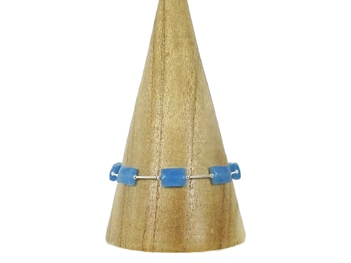 For this uniquely designed ladies blue bracelet, I chose faceted Blue Jade oblong shaped beads & Sterling Silver.