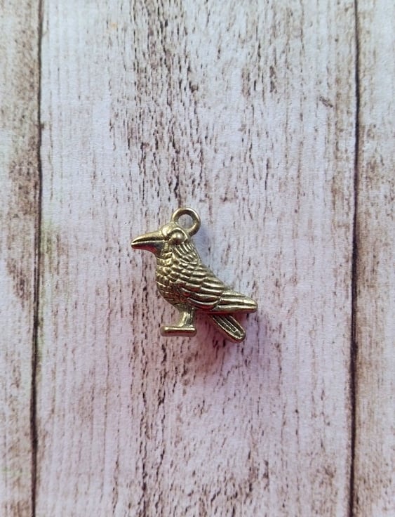 One pendant charm of a crow, antique bronze effect metal. 17mm x 17mm x 5mm. Only one available, last one.