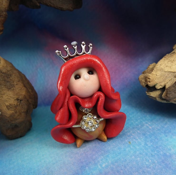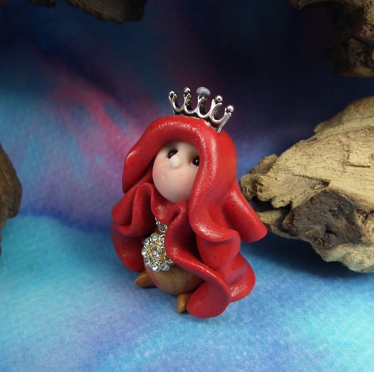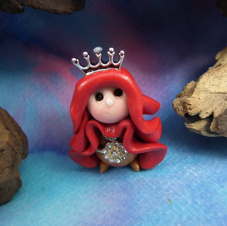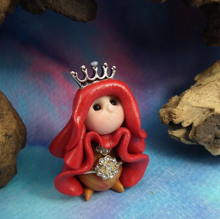 This is a 'one of a kind' creation having been entirely handmade without the use of moulds here at my studio on the Sussex Coast. Modelled with Prosculpt polymers, painted with heat set paints before sealing with lacquer, Queen Hellen has sparkling black onyx eyes. Queen Hellen the Royal Gnome is just one and a half inches tall.