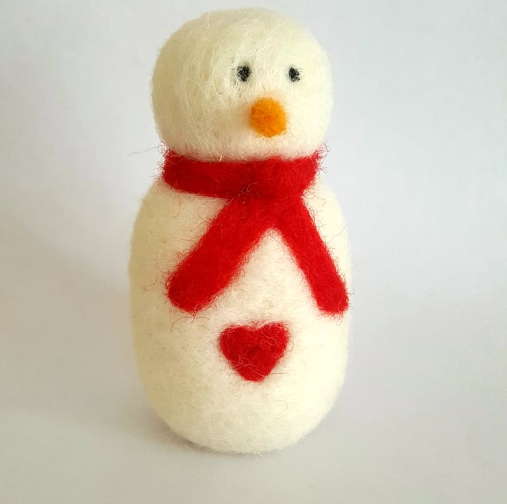 Needle felted from carded wool and sporting a lovely bright red scarf and love heart.