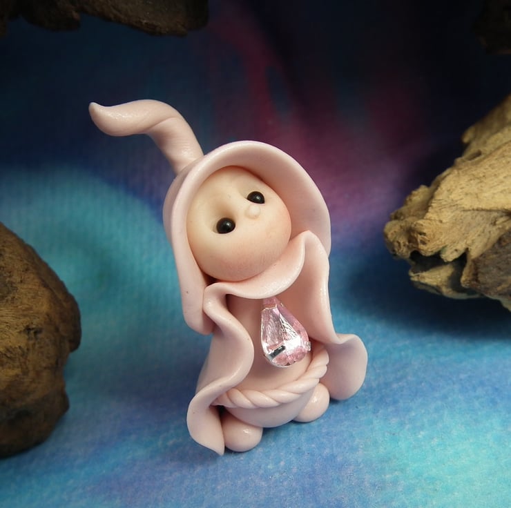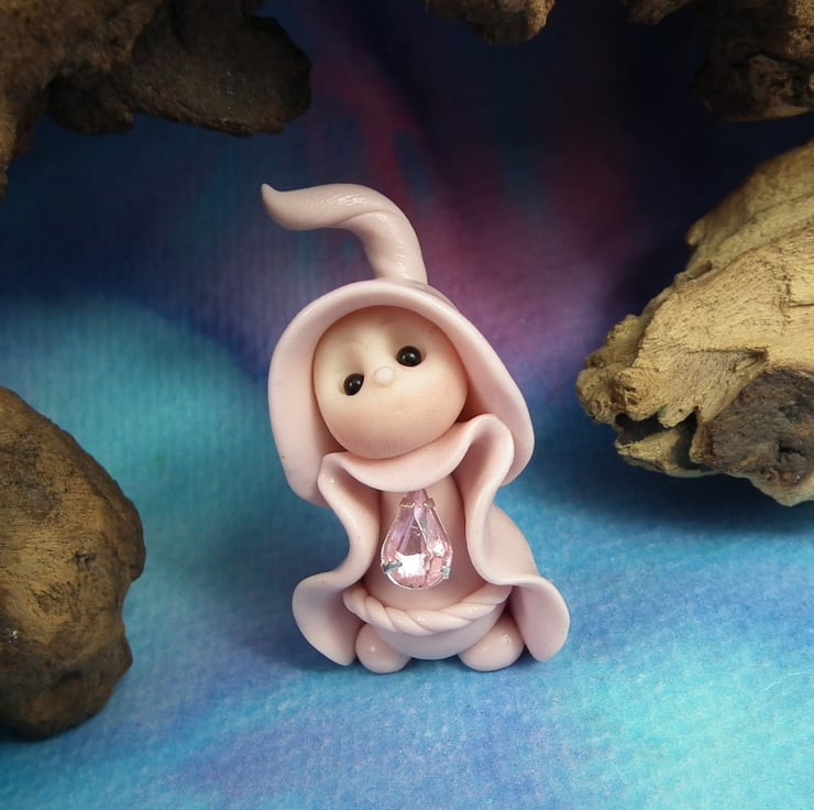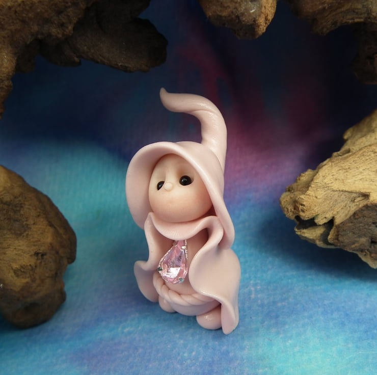 This is a 'one of a kind' creation having been entirely handmade without the use of moulds here at my studio on the Sussex Coast. Modelled with Prosculpt polymers, painted with heat set paints before sealing with lacquer, Rozie has sparkling black onyx eyes. Rozie the Gnome Maiden is just one and a half inches tall.