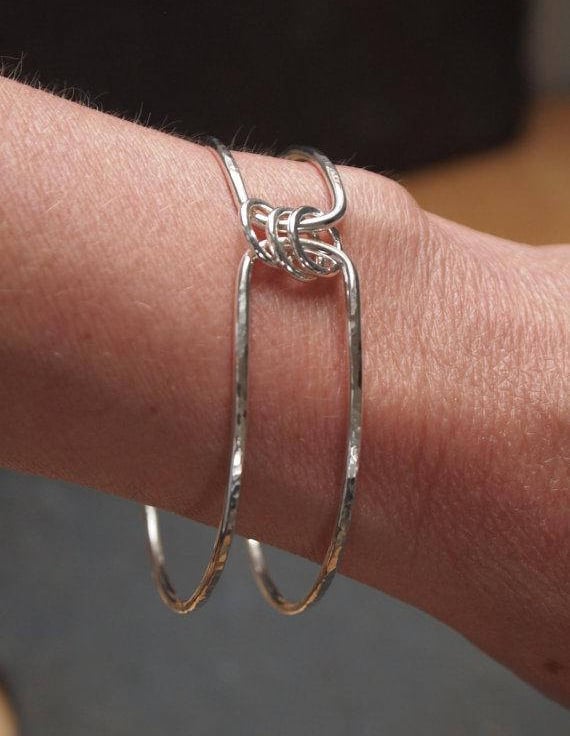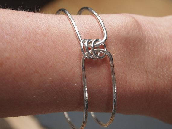 This is a double bangle with the bands connected by 3 silver spinner rings that make a lovely tinkly sound as they spin around.