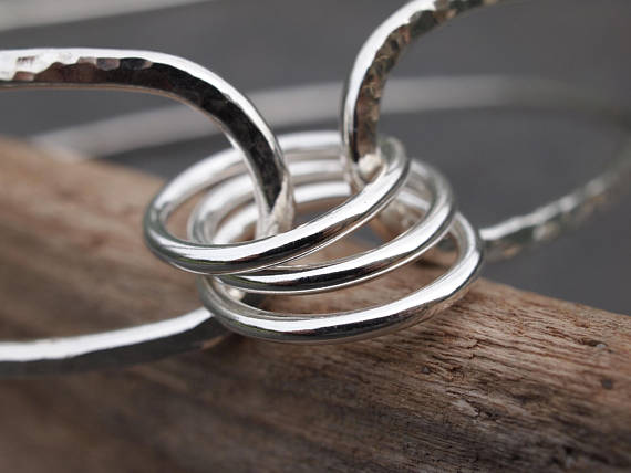 Handmade sterling silver spinner ring bangle with hammered texture.