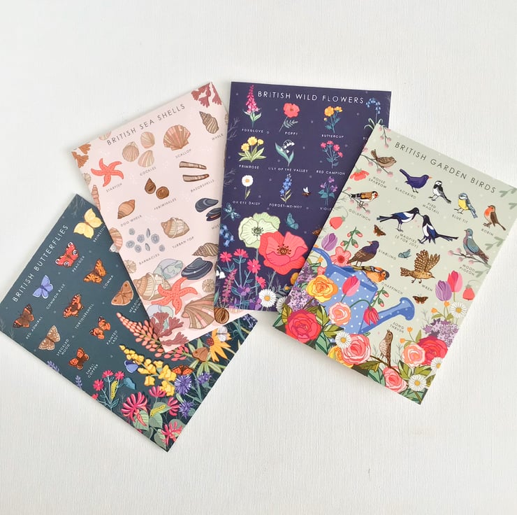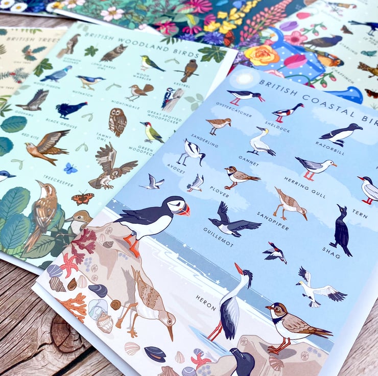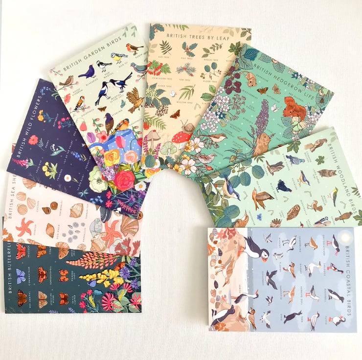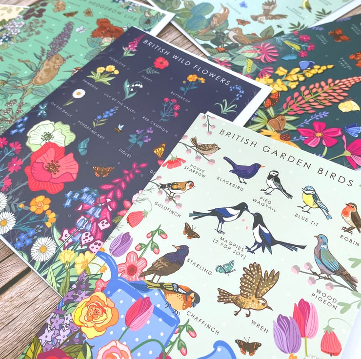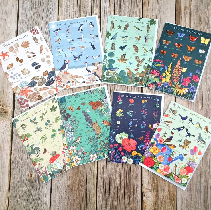 My nature guide collection began when my children were at primary school and I wanted to help educate them on the natural world around them. I had read an article about the decline of nature and how lack of knowledge and understanding of the natural world from an early age plays a big part. When people grow up not knowing the names of things, they are unlikely to care about those things. That drove me to start creating a set of designs to use as cards and wall art ,that are visually appealing and help put names to the wildlife and plants around us. The collection has continued to grow over the years and I have plans for many more, because what I have learned most of all from creating this collection (and I have learnt a lot!)…that others care deeply about our natural environment too!
