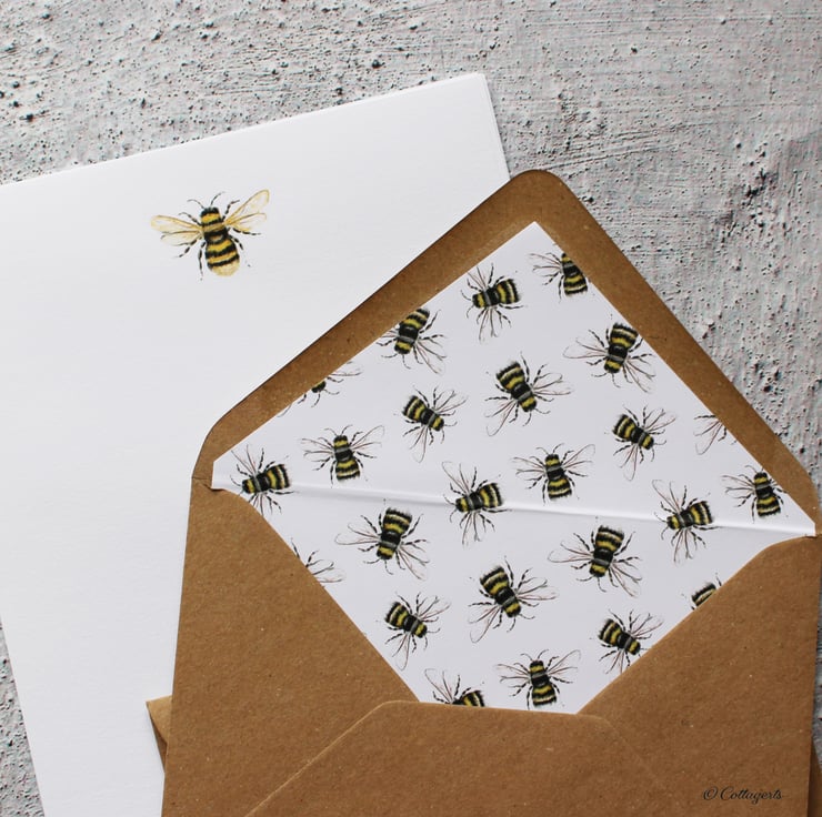 - 12 sheets of A5 letter writing paper headed with the bee