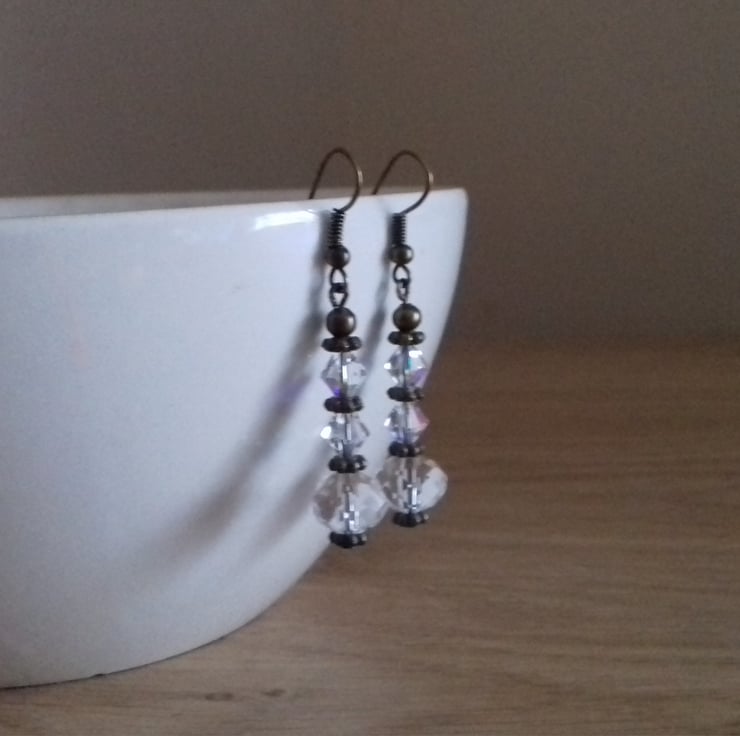 THESE ATTRACTIVE SPARKLE CRYSTAL AND ANTIQUE BRONZE EARRINGS, HAVE BEEN DESIGNED AND HANDMADE BY MYSELF.