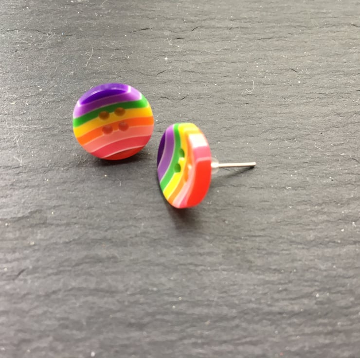 The buttons measure 12mm in diameter and are attached with heavy duty jewellery glue to silver plated ear posts. The earrings are completed with rubber bullet "butterflies" to hold the earring firmly in place.